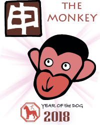 Chinese 2018 Horoscope for the Zodiac sign Monkey, for the 2018 Yellow Earth DOG Year