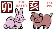 Chinese Compatibility Horoscope for Combination of Rabbit and Pig Zodiac Signs.