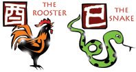 Chinese Compatibility Horoscope for Combination of Rooster and Snake Zodiac Signs.